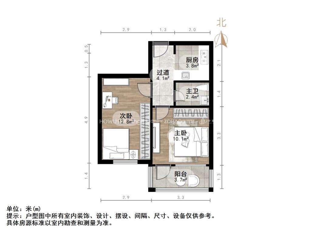朝向南北 建筑面积54㎡