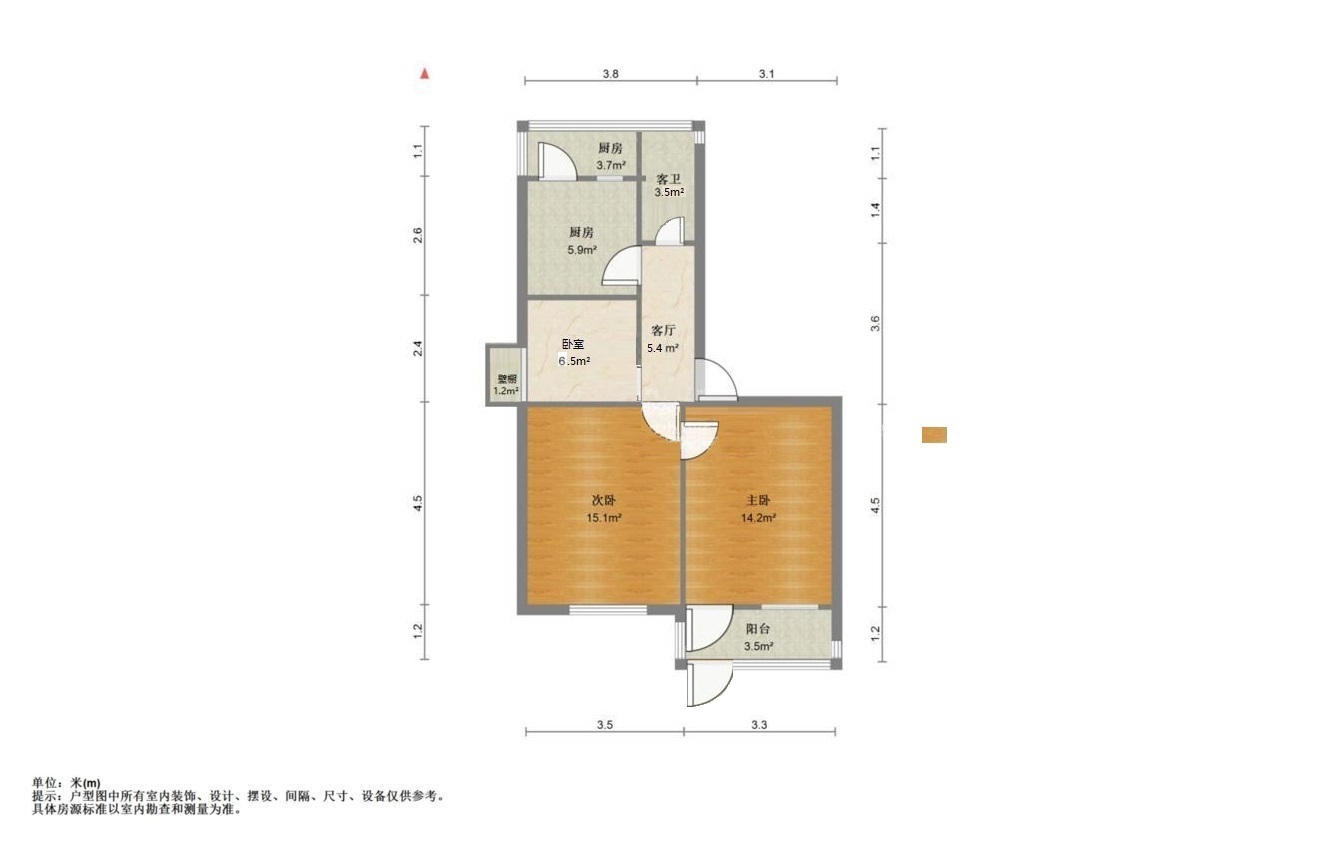 厅室2室1厅1卫1阳台