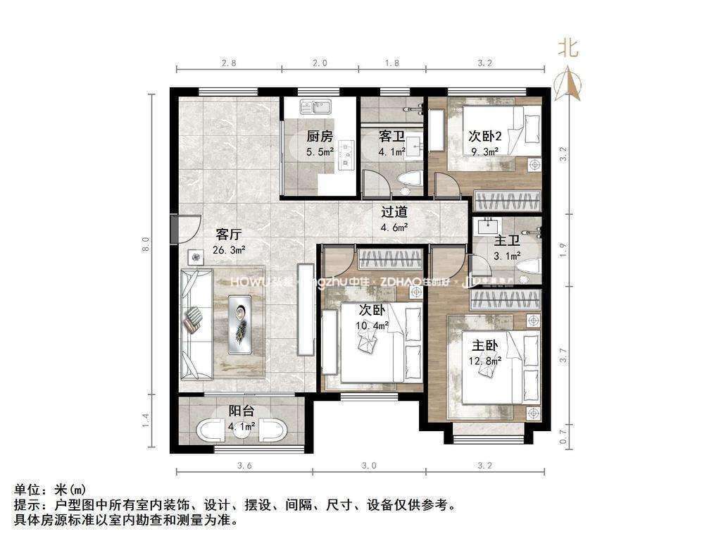 朝向南北 建筑面积126㎡