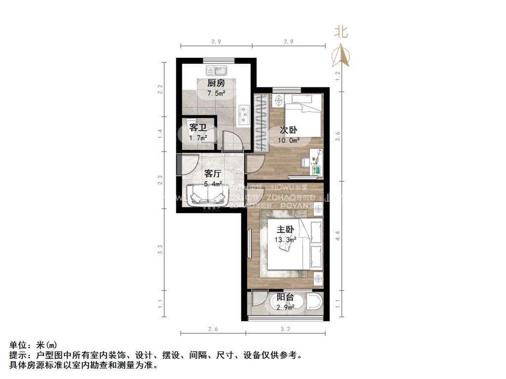 朝向南北 建筑面积48.6㎡