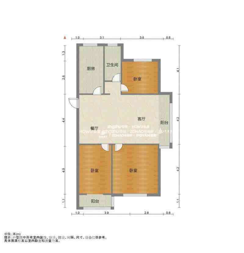厅室4室2厅1卫1阳台