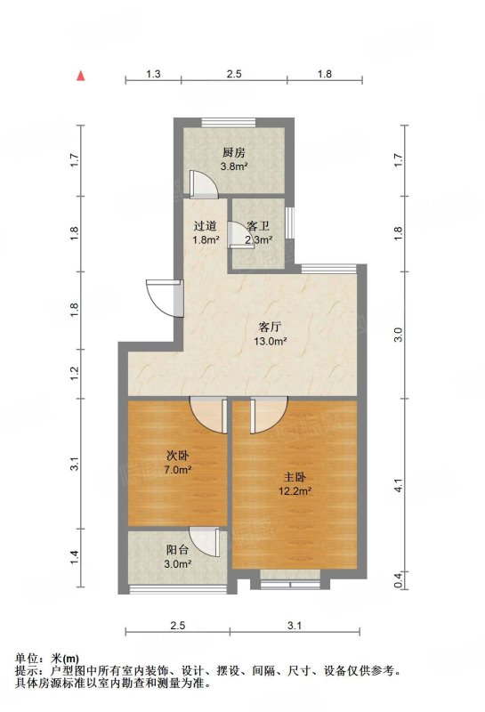 厅室2室1厅1卫1阳台
