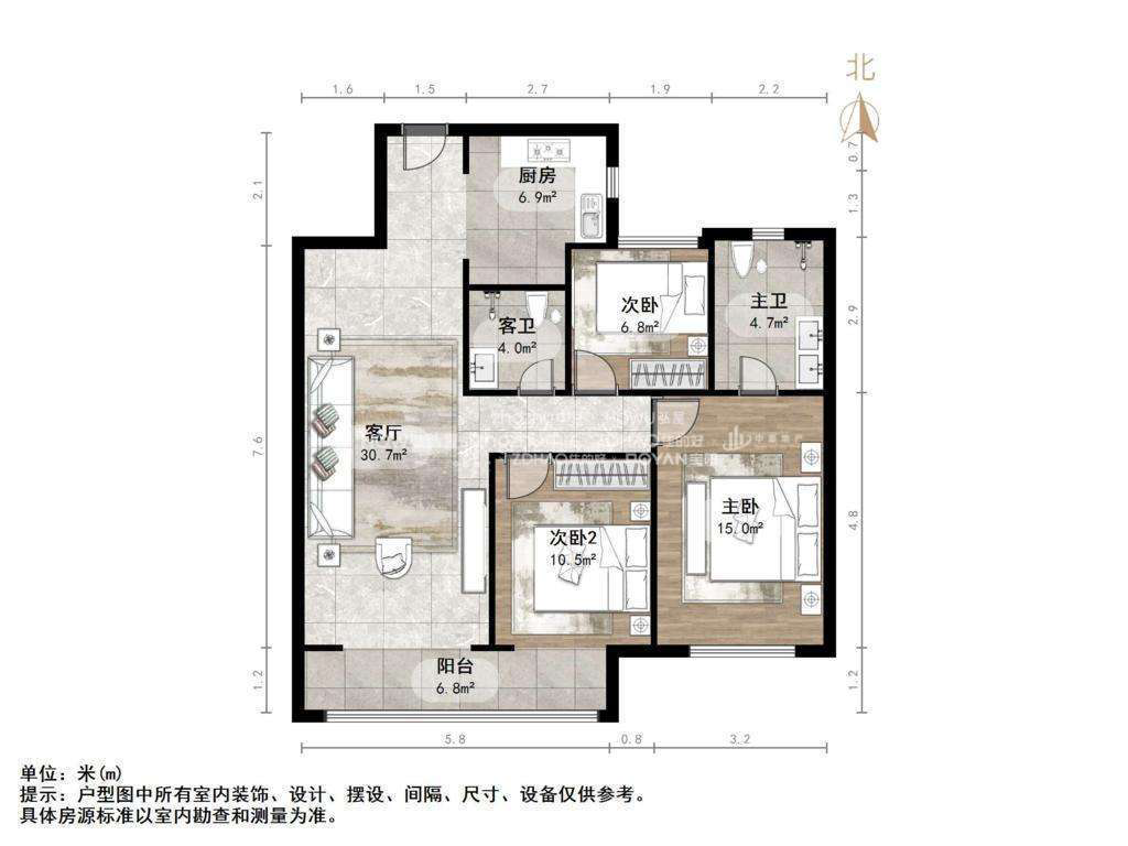 厅室3室2厅2卫1阳台