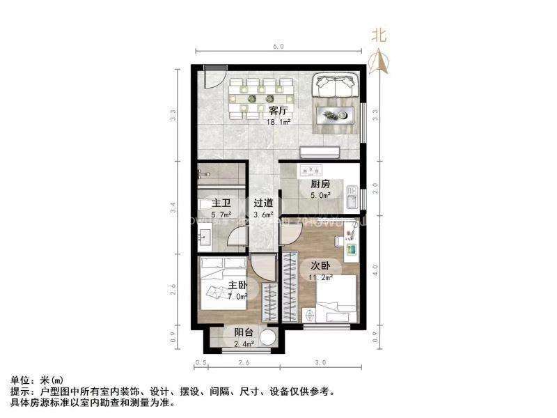朝向南北 建筑面积65㎡