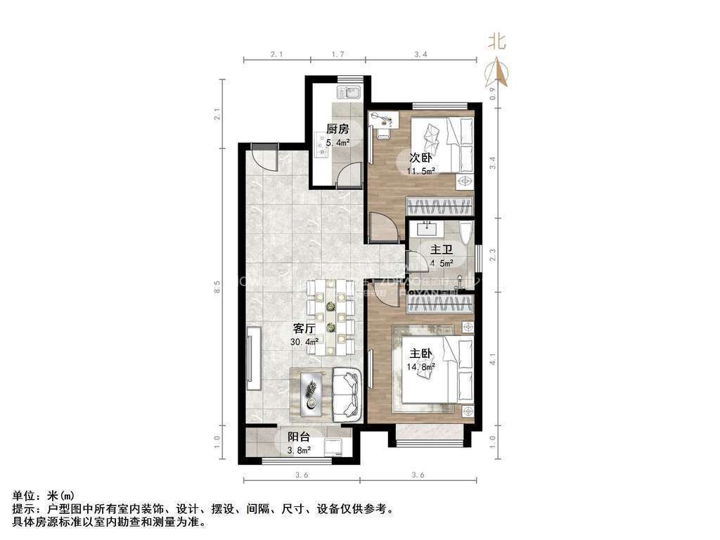 朝向南北 建筑面积91.73㎡