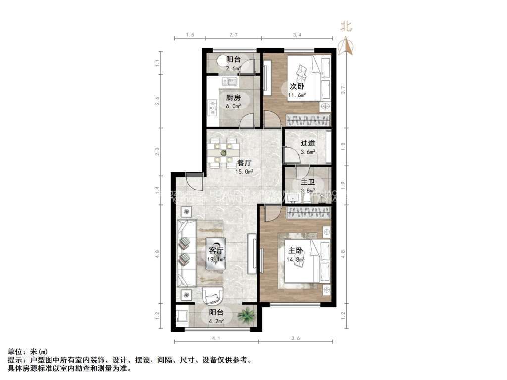 朝向南北 建筑面积116㎡