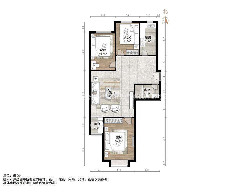 厅室3室2厅1卫1阳台