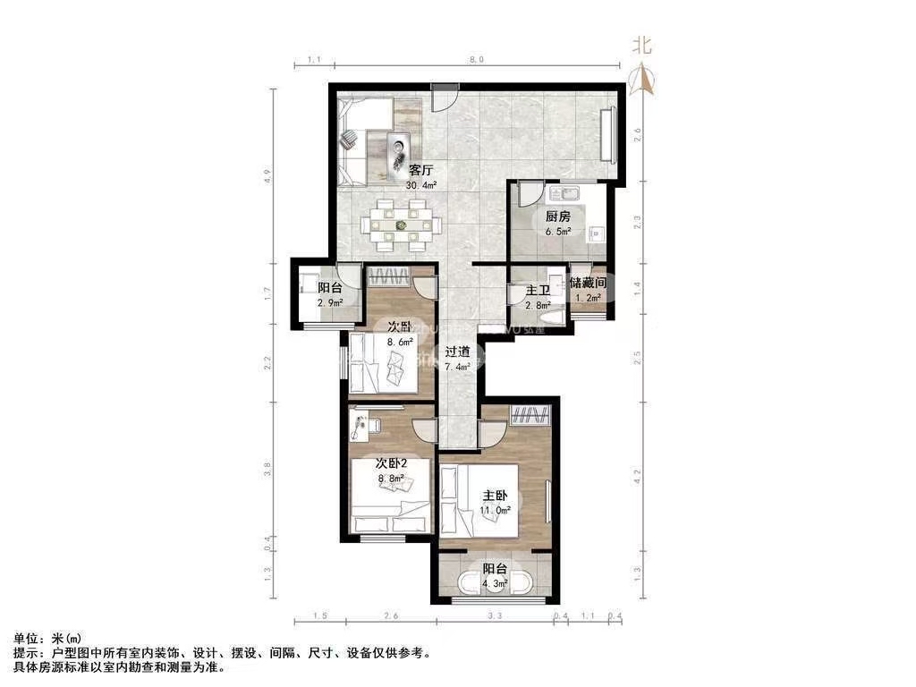朝向南北 建筑面积116㎡