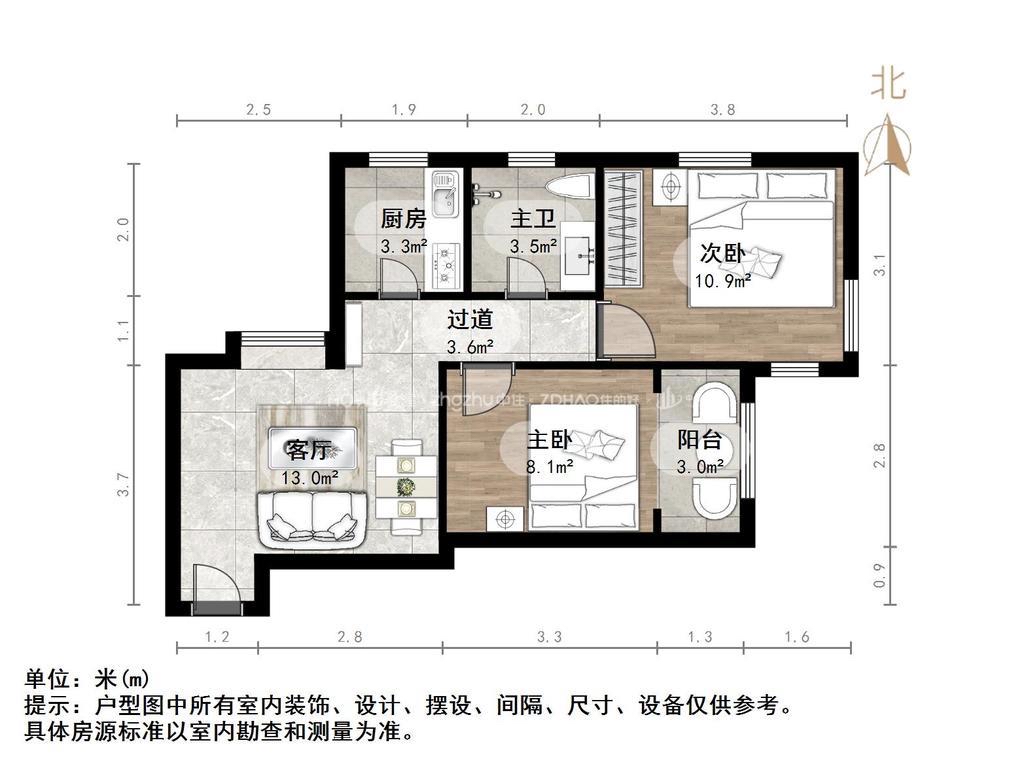 朝向东北 建筑面积68.8㎡