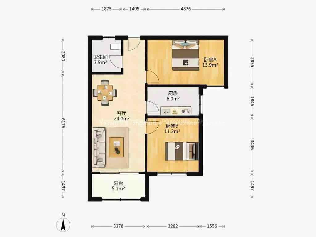 厅室2室2厅1卫1阳台
