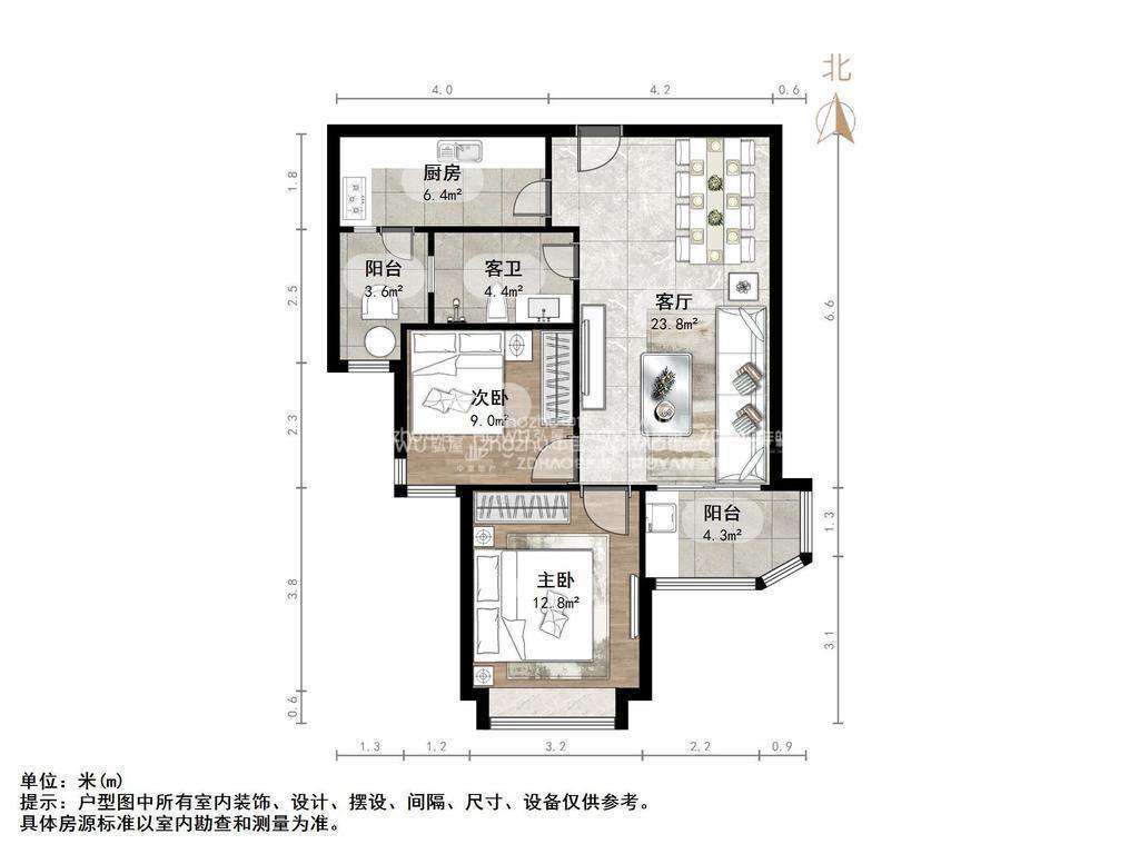 朝向南北 建筑面积90.4㎡