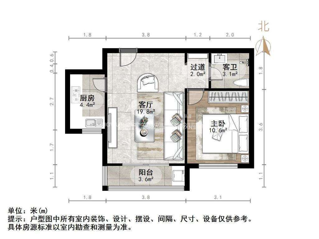 厅室1室1厅1卫1阳台