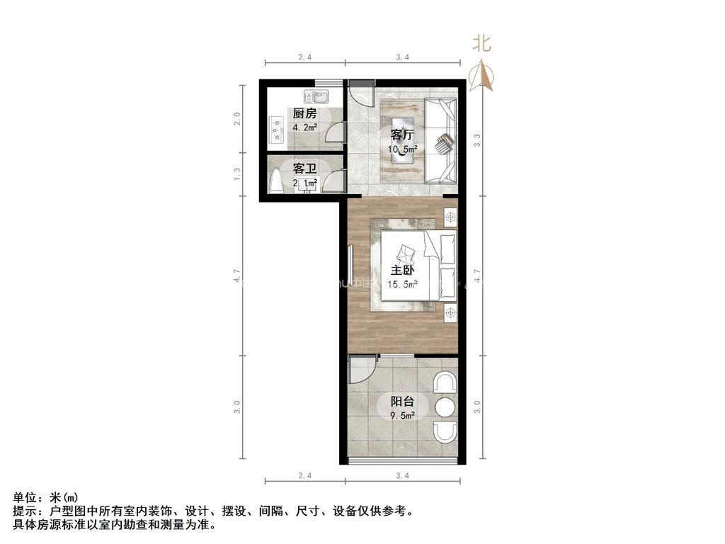 厅室1室1厅1卫1阳台
