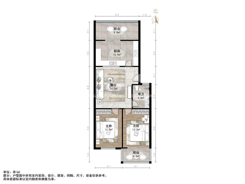 朝向南北 建筑面积58.5㎡