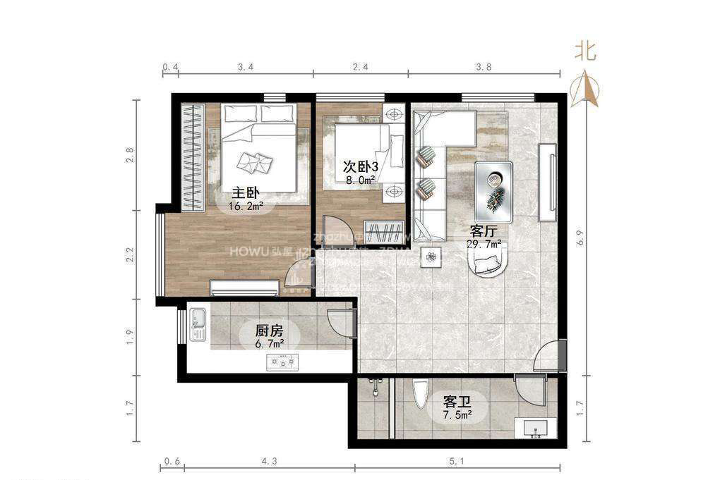 朝向西北 建筑面积87.95㎡