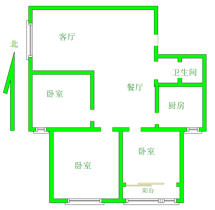 厅室3室2厅1卫1阳台