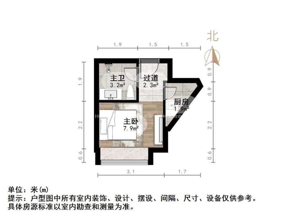 朝向南北 建筑面积22.2㎡
