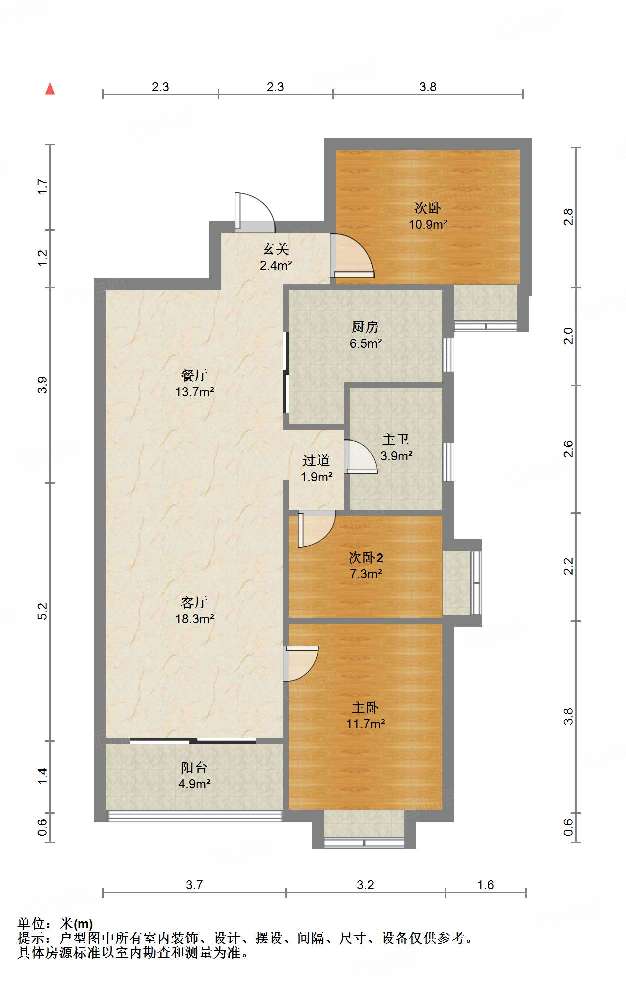 朝向南北 建筑面积105㎡