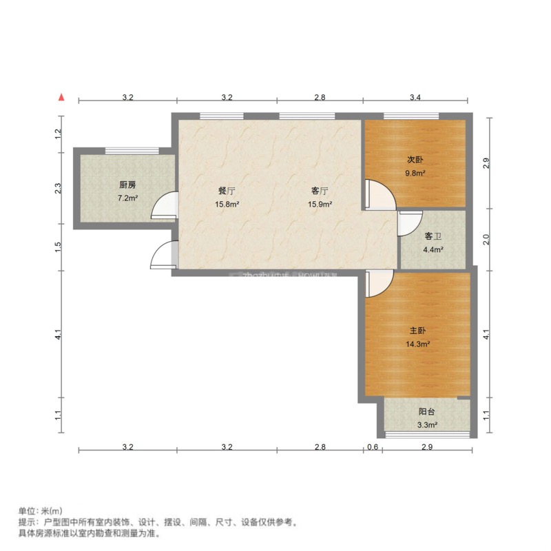 厅室2室2厅1卫1阳台