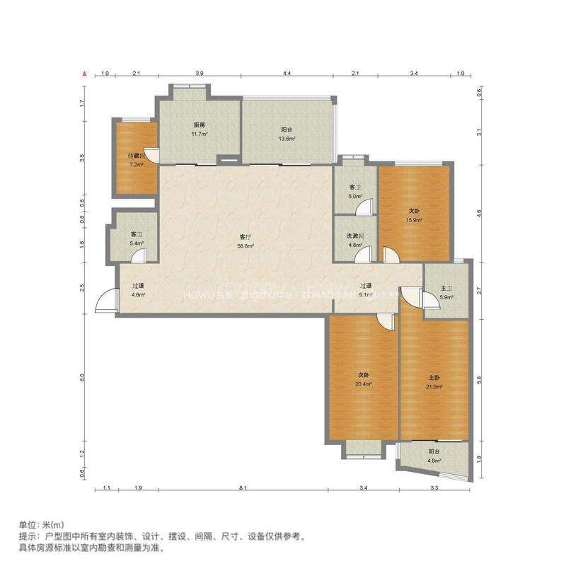 厅室3室2厅2卫0阳台