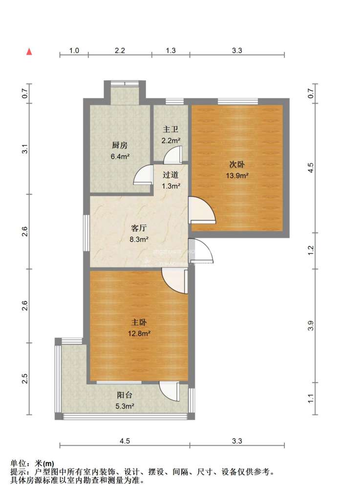 厅室2室1厅1卫1阳台