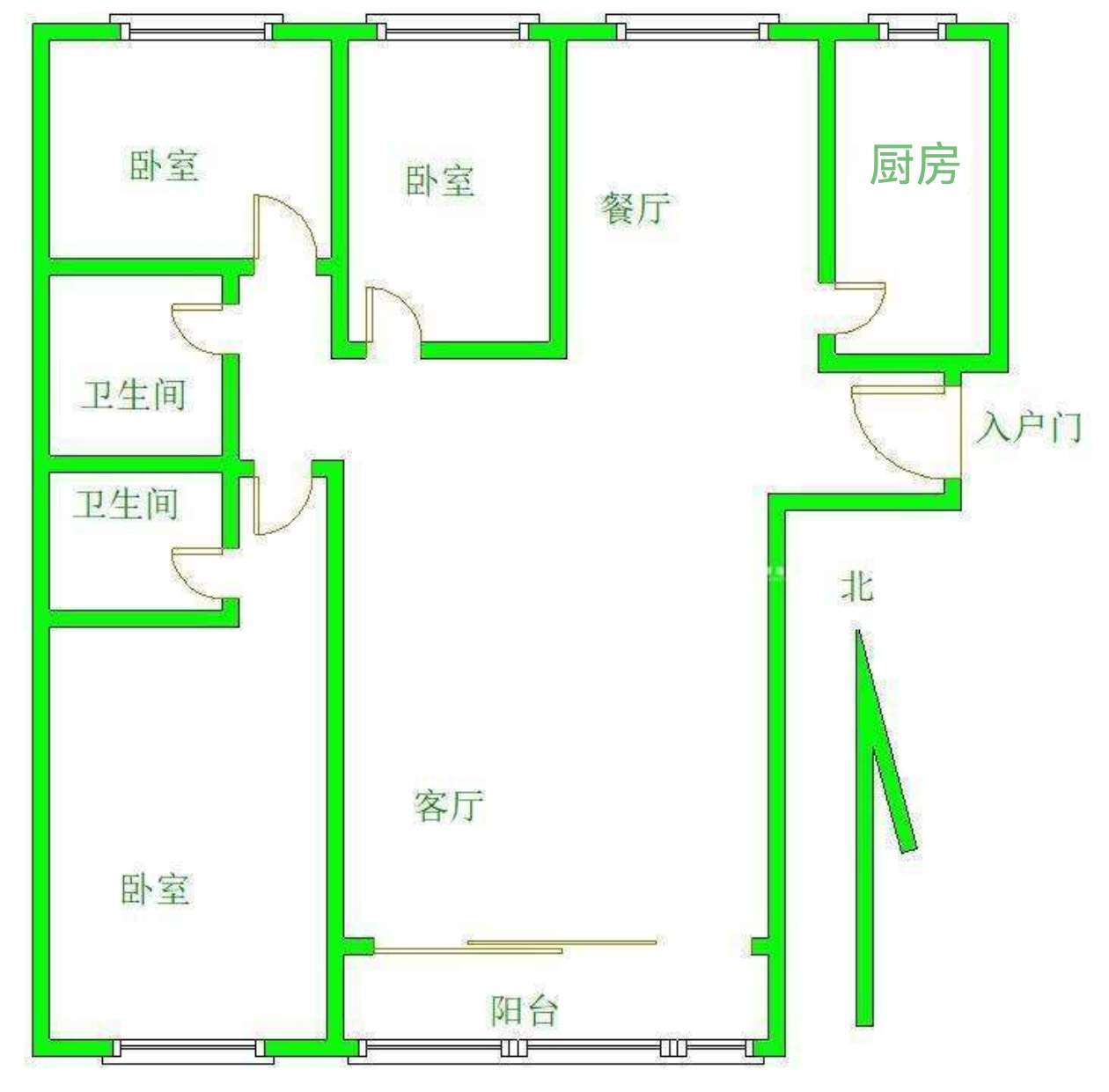 厅室3室2厅2卫1阳台