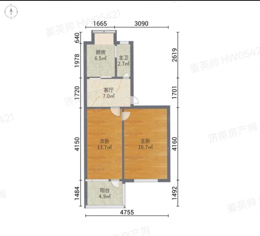 厅室2室1厅1卫1阳台