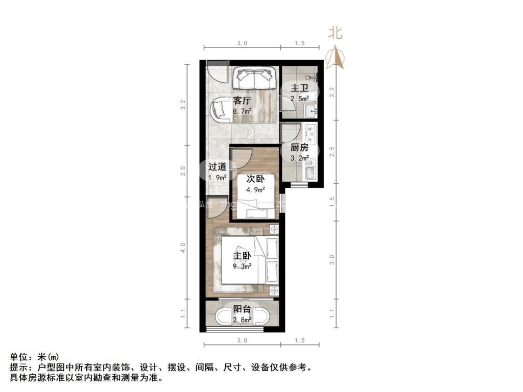 厅室2室2厅1卫1阳台
