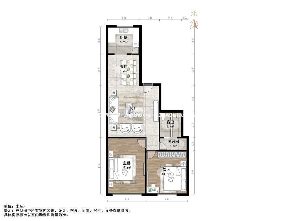 朝向南北 建筑面积100㎡