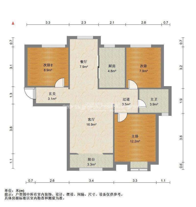 厅室3室2厅1卫1阳台