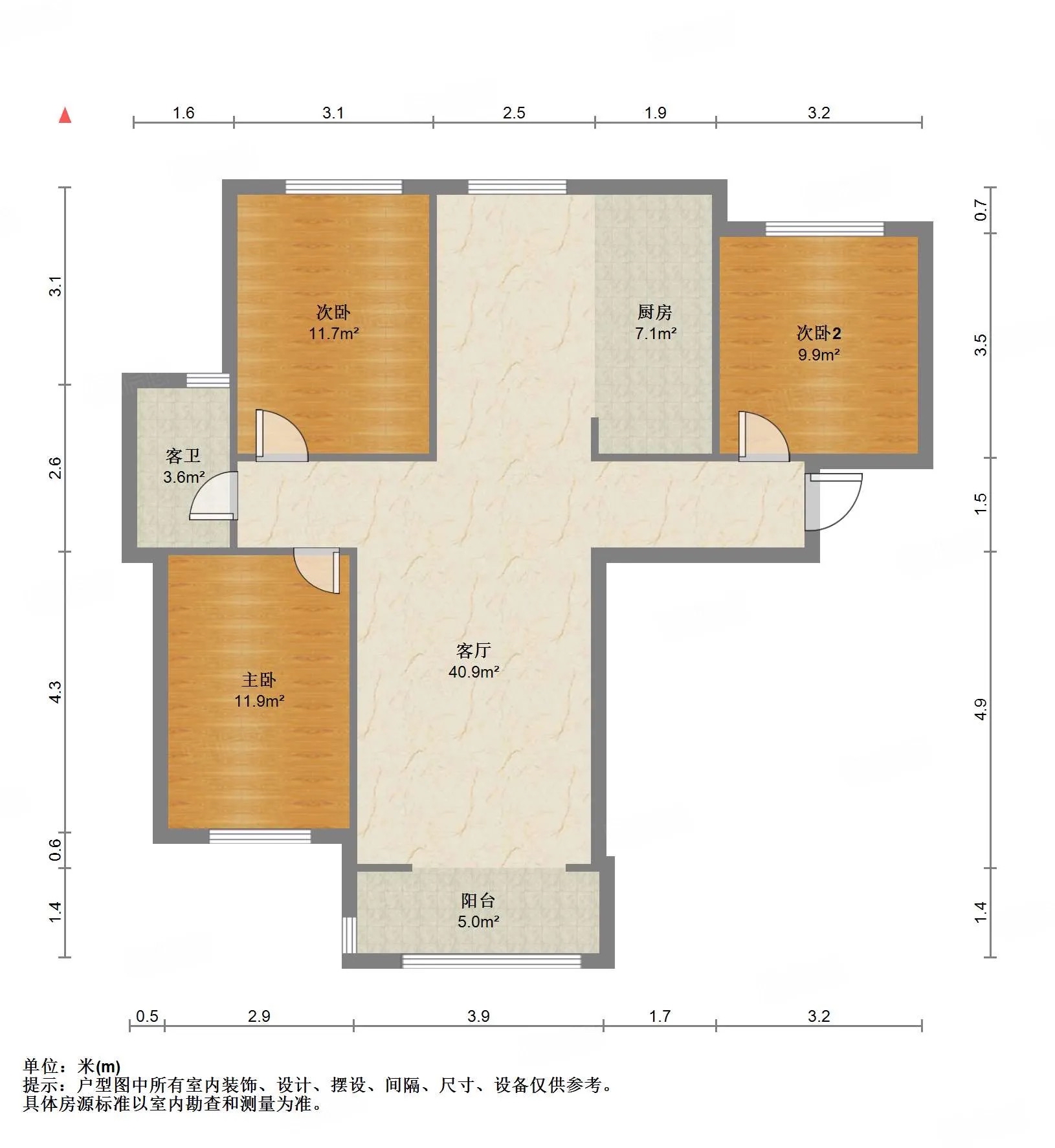 厅室3室2厅1卫2阳台