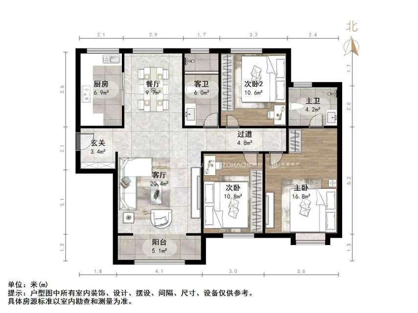 厅室3室2厅2卫1阳台