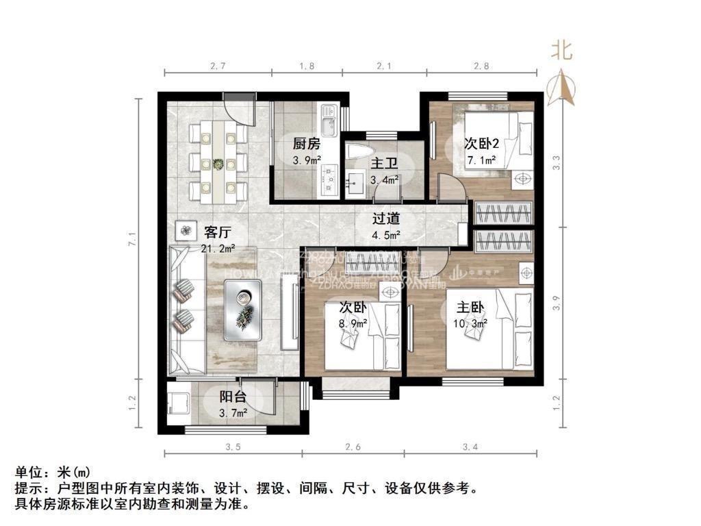 厅室3室2厅1卫1阳台