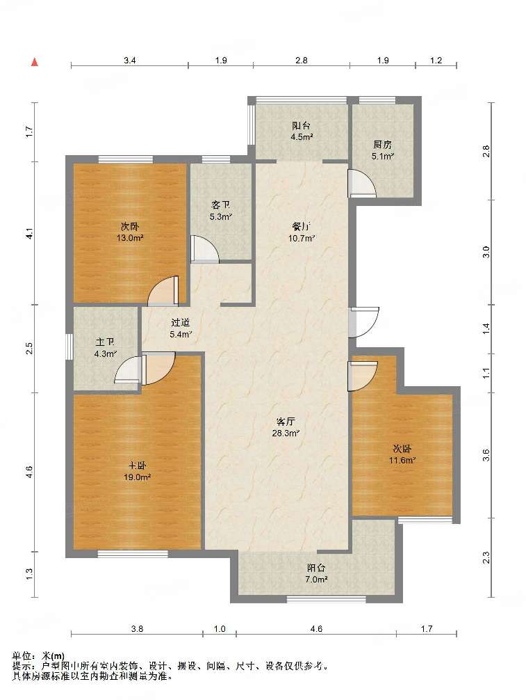 厅室3室2厅2卫2阳台