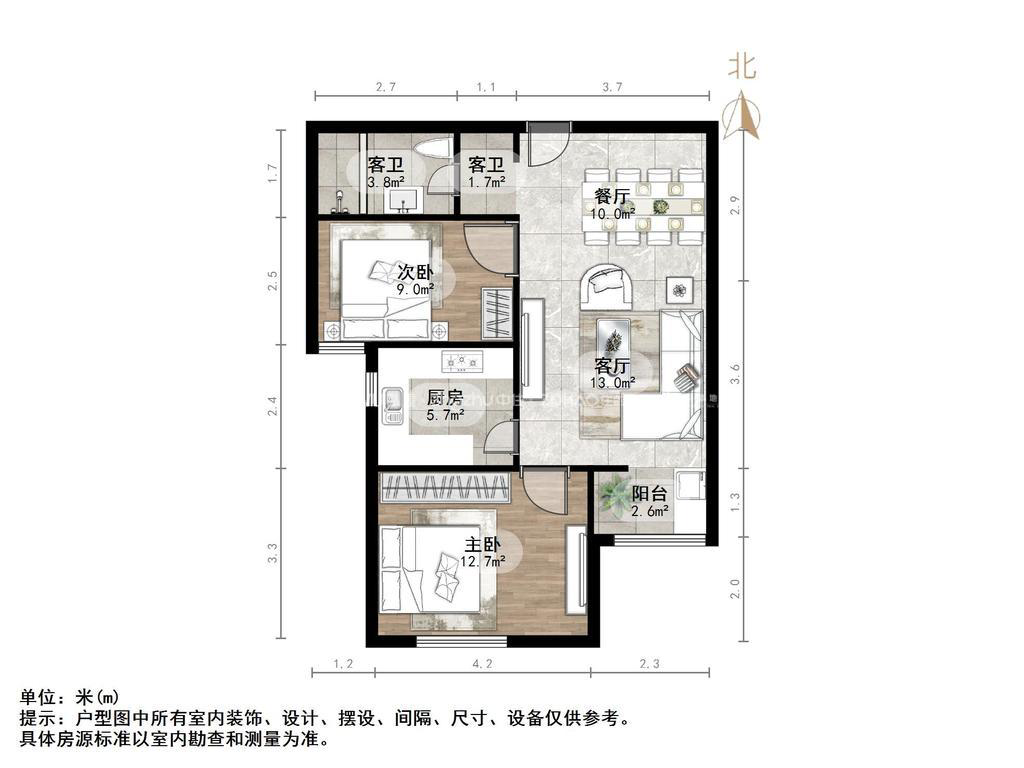 厅室2室2厅1卫1阳台