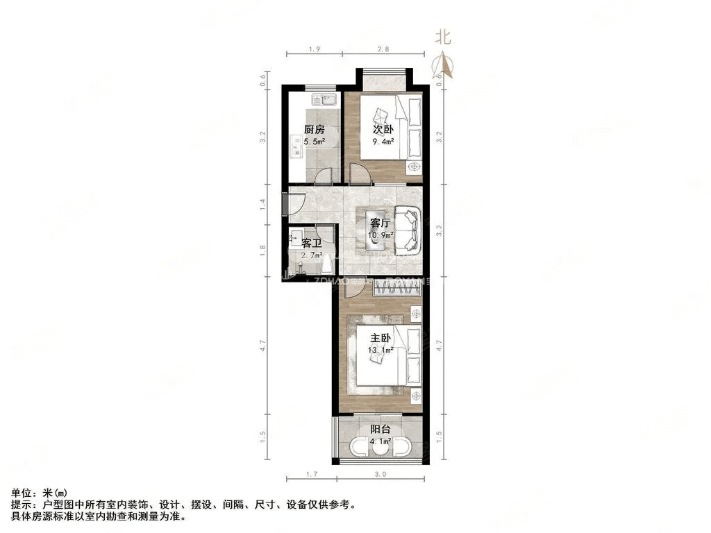 厅室2室1厅1卫1阳台