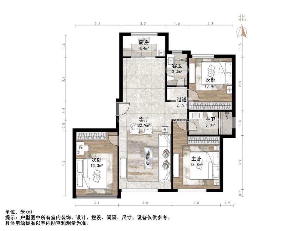 厅室3室2厅2卫1阳台