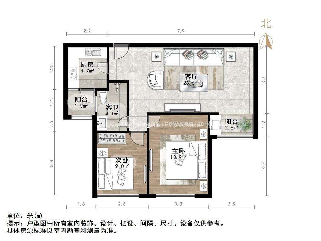 厅室2室2厅1卫1阳台