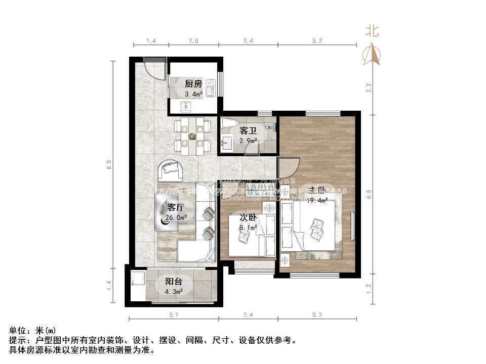 厅室2室2厅1卫1阳台