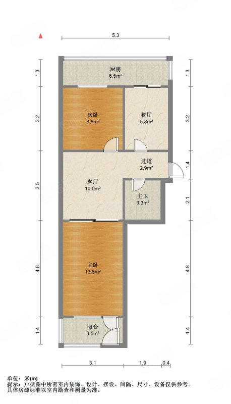厅室2室1厅1卫2阳台