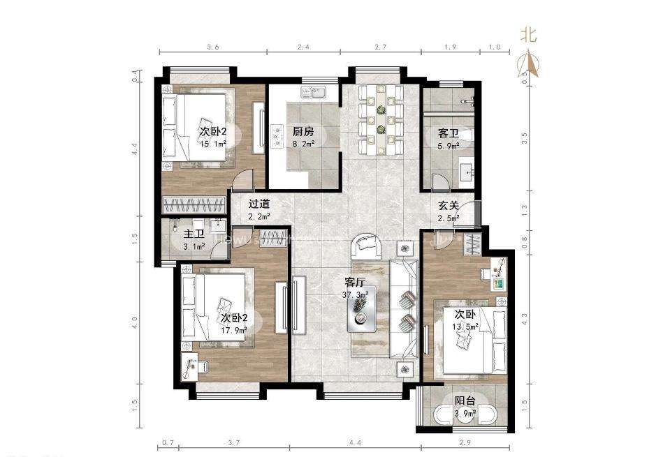 厅室3室2厅2卫2阳台