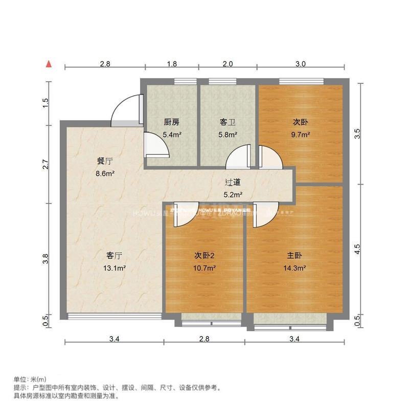 朝向南北 建筑面积95㎡