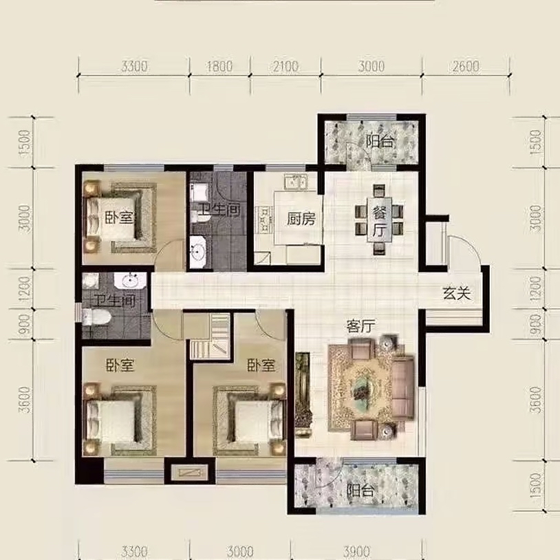 厅室3室2厅2卫1阳台