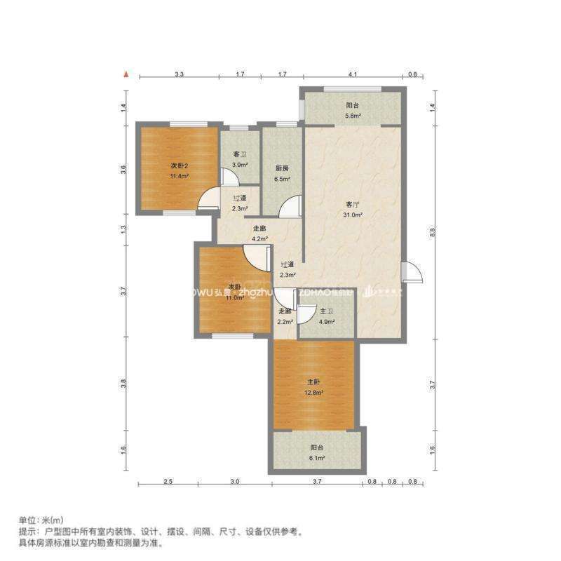 厅室3室2厅2卫2阳台