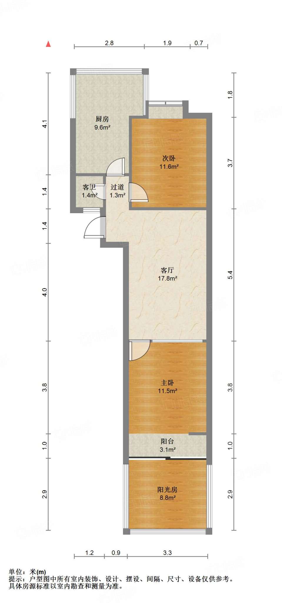 厅室2室1厅1卫1阳台