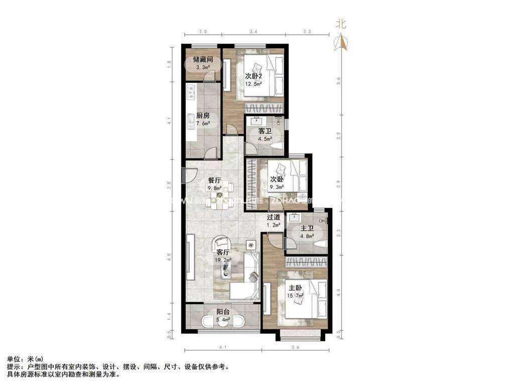 厅室3室2厅2卫1阳台