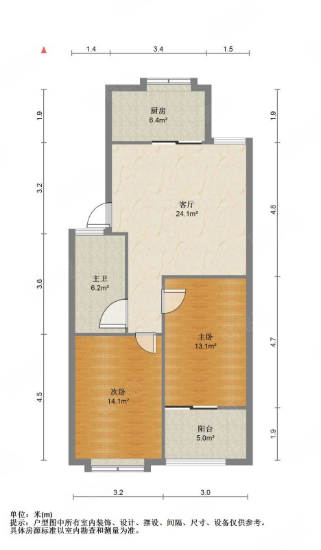厅室2室2厅1卫1阳台