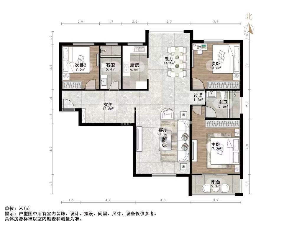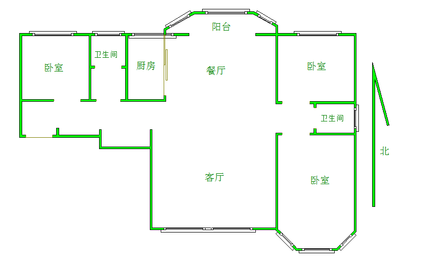 厅室3室2厅2卫1阳台