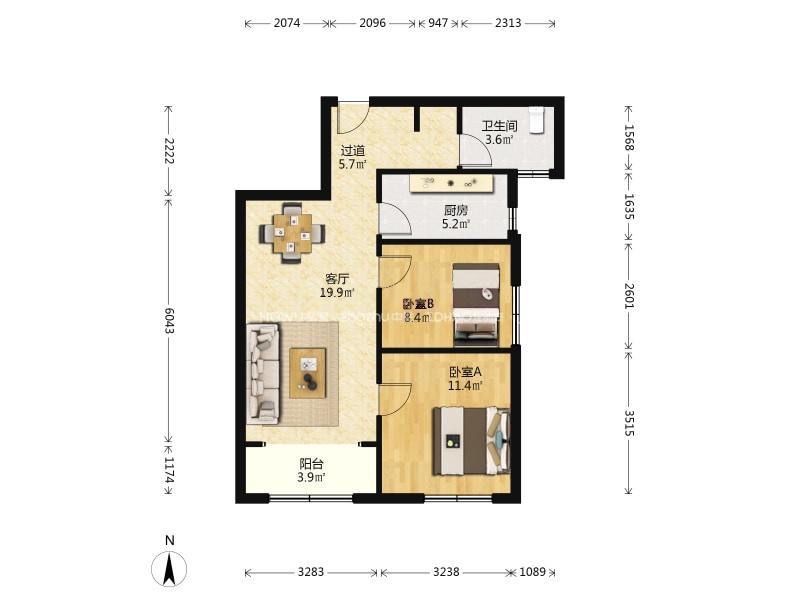 厅室2室2厅1卫1阳台