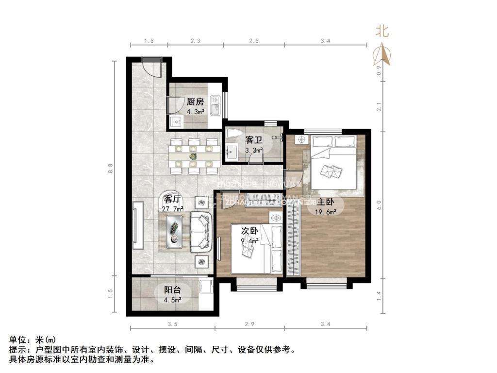 朝向南北 建筑面积98.8㎡